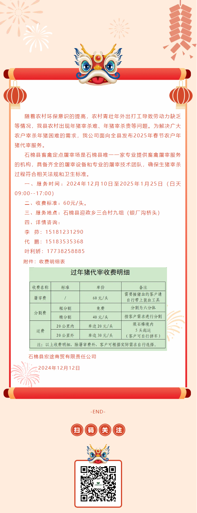 年猪代宰业务服务公告